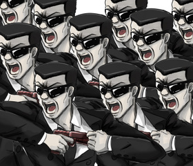 だがクローンヤクザは、全員まったく同じ動きで左の胸元からチャカを抜き、一糸乱れぬ射撃でライオンをあの世に送った。それから、まったく同じ動きでチャカを仕舞い、まったく同じ動きで乱れた髪を直し、まったく同じ動きで床にタンを吐いた。ナムアミダブツ! 何という統率力か!