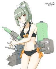2020年8月7日のイベント中のオンメンテで改二以降のみ水着mode実装。改二衣装に色を合わせたリボン付きのビキニという実に可愛らしい姿で改二実装・バレンタイン衣装(コンプティーク表紙)と続く追加に提督陣も大いに盛り上がった。兵装実験軽巡の面目躍如というか改二限定と云うだけあってそれぞれの形態で変化もあるという一粒で三度美味しい水着と相成った(静画は改二特。改二は右側の甲標的が無く水鉄砲の本体・タンクが黄色、丁になると水鉄砲が青になり通常同様ヘッドセット着用、甲標的が爆雷投射機に換装)