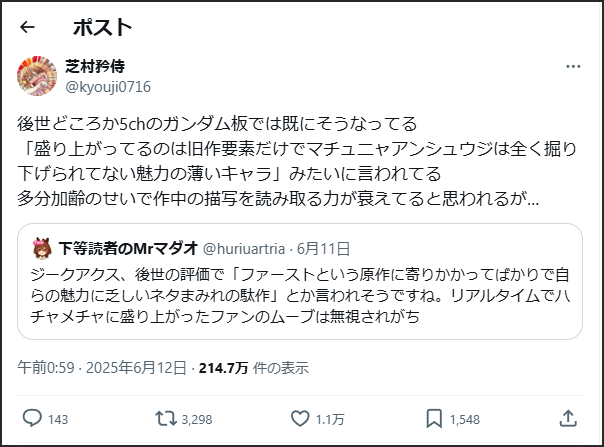 ドヤ顔で語っていたジークアクス信者さん、どうすんのこれ?